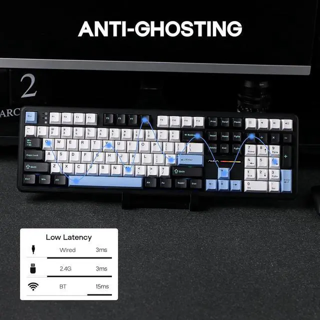Comforts: Meet the 100% full size variation of the EPOMAKER X AULA F75, the F108 Mechanical keyboard that offers the same creamy sound and unparalleled performance as F75 but in upgraded full-size layout. The 108 anti-ghosting keys deliver accuracy and greater possibilities in configuration and control, which makes them ideal for multitasking and fast response in gaming and the office. While the 2-stage kickstand, low front height and cherry profile keycaps rid you of finger fatigue and wrist strain for a pain-free day of work