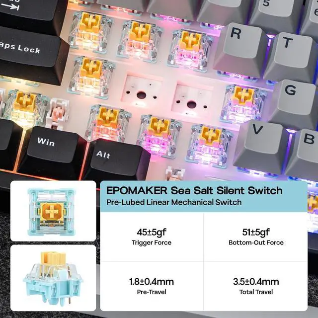 Hot-Swappable Custom Keyboard: Personalise functions, sounds and feel of each keystroke as you please, with the powerful set-up of the TH108 PRO custom keyboard. Experiment the various acoustic feedback and feel of mainstream 5-pin mechanical switches with this hot-swappable keyboard; and bask in the thocky melody of Creamy Jade or the tranquil silence of Sea Salt Silent switches of ours, both factory-lubed for out-of-box perfection. Try out the intuitive web-based driver to remap, record macros, toggle backlight and sensitivity of TH108 RRO keyboard across Mac and WIN devices, for the ultimate PC peripheral that matches your gaming style and workflow.