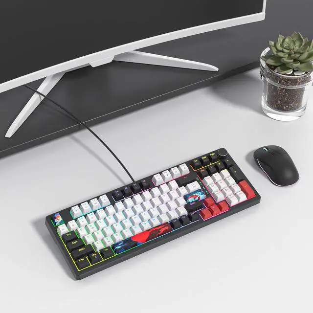 98-Key Layout KeyboardThe compact 98-key layout retains all essential keys, including a full number pad, while saving space on your desk. This creamy keyboard offers a perfect balance between functionality and a streamlined design.