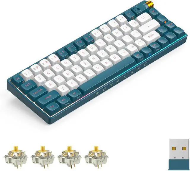 Tri-mode Connection Keyboard - ROYALAXE R68 wireless mechanical keyboard supports BT 5.0, 2.4GH z wireless and USB wired connection, can connect up to five devices at the same time, and easily switch by knob. R68 computer keyboard is suitable for PC, laptops, tablets, mobile phones, PS, XBOX etc, to meet all the needs of users. In addition, the rechargeable keyboard is equipped with a 2100mAh large-capacity battery, which has long-lasting battery life.