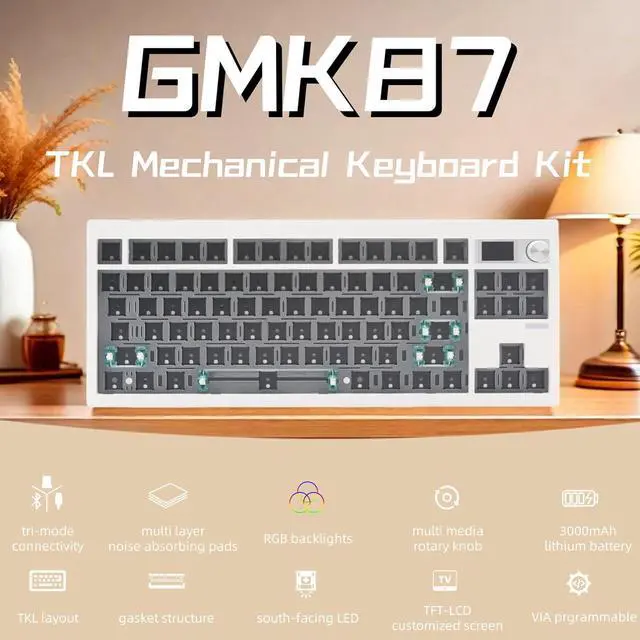 SOUTH-FACING RGB BACKLITS RGB is a necessary point when you play PC games. This GMK87 mechanical keyboard kit has lots of backlight modes you can adjust according to your preference.