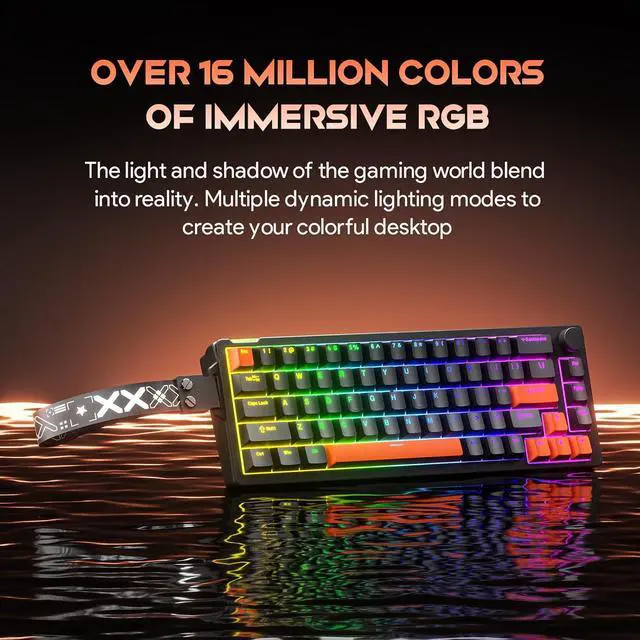 Multi-Function Knob & Programmable RGB Includes a aluminum knob for volume control/mute. Features RGB backlighting with 16 lighting modes and supports deep customization of keys and lighting via QMK/VIA compatible software.