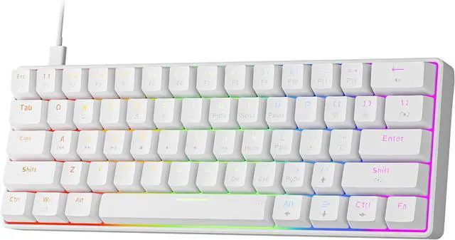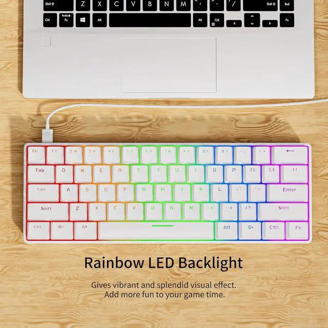 Backlit Mechanical Keyboard: This 60 Percent Mechanical Keyboard has 19 LED rainbow backlight effects, 4 brightness levels, 5 lighting speed levels; enabling this wired gaming keyboard to adapt to different lighting needs and create an immersive gaming experience. The keycaps of the gaming keyboard are upgraded to double-color injection molding, and the characters are transparent and luminous.