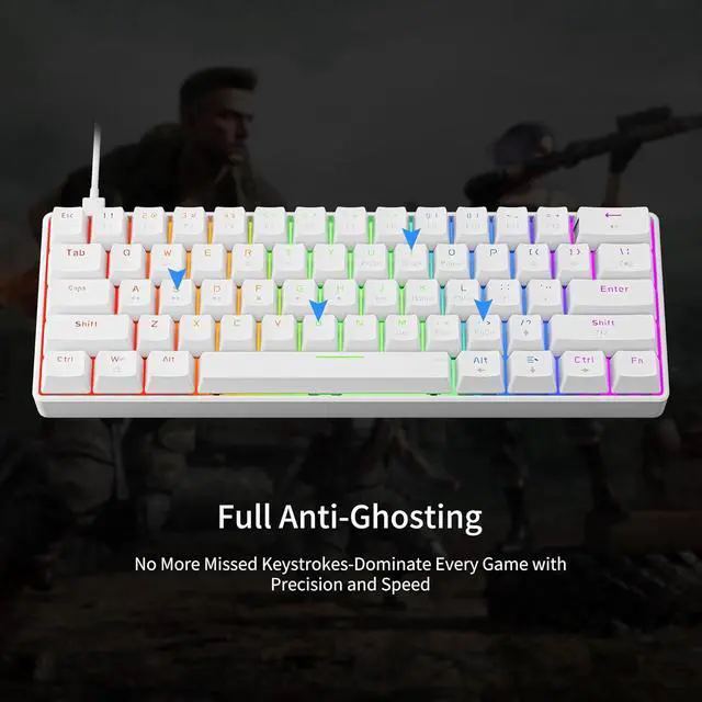 Portability: This gaming mechanical keyboard features multimedia keys, quick access to volume and playback functions, and a detachable data cable for added portability. Perfect for gamers on the go or anyone looking for a versatile computer keyboard, this 60 percent keyboard delivers a customizable, high-performance experience wherever you are.