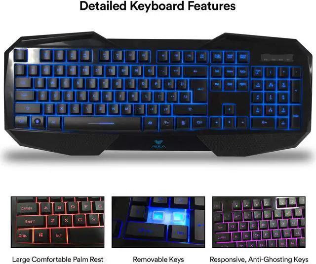 Ultra slim full size gaming keyboard, with tactile keys provide excellent hand feelling. Large and comfortable palm rest to reduce hand fatigue