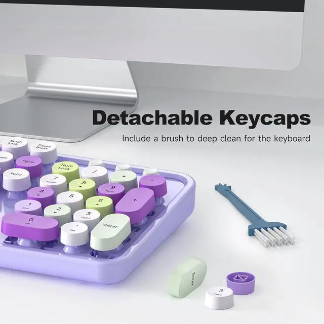 Detachable Keycaps Floating Button Design - All buttons can be disassembled, put in water to clean, and also equipped with a brush to clean the garbage on the keyboard. The floating button design gives you a soft and quiet feeling, and takes you back to the most original type of Typewriter Style!