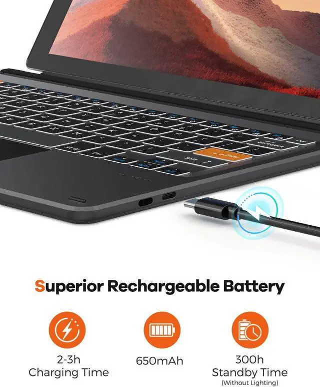 Watch Before Buy: This keyboard ONLY works on surface pro 7 Plus 7/6/5/4/3 12.3 devices. The keyboard is charged via USB-C Cable, NOT supports official smart charge to tablet. The keyboard CAN' T charge pens.
