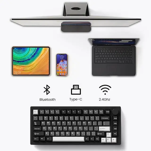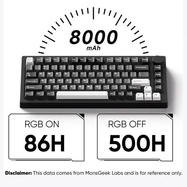 Multi-device& Wireless: MonsGeek M1 V5 mechanical keyboard can be connected to multiple devices through Bluetooth, multi-host 2.4G hz (with a receiver), and wired Type-C modes with easy switch. Comes with a large 8000mAh battery, M1 V5 gaming keyboard offers strong flexibility in workplace for users with multi-devices computers, tablets and mobile devices