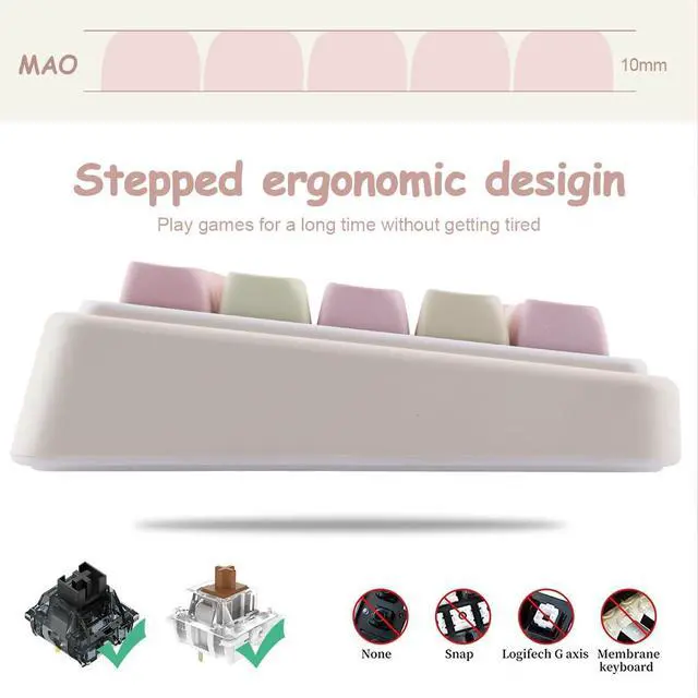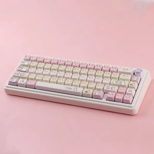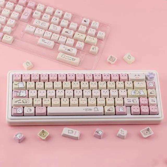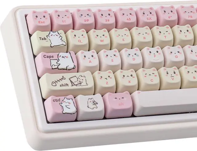 MAO Profile KeycapsThe cute cat keycaps designed with the MAO profile, and increases the contact surface between the keycap and the fingers, you won' t feel fatigued when using it for long time during work
