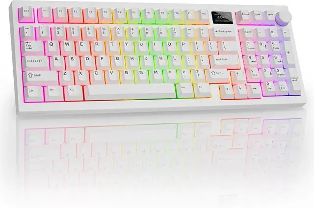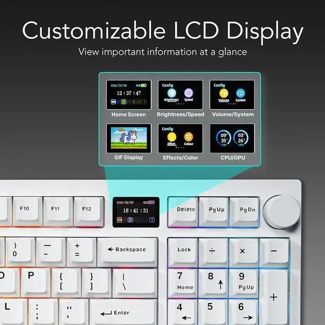 CUSTOMIZABLE LCD SCREEN: Upgrade your setup with the TECWARE Spectre 96% RGB mechanical gaming keyboard featuring a 1.14 TFT-LCD smart screen for system info, CPU/GPU stats, GIF display, and real-time brightness control. This full size wireless gaming keyboard with screen combines functionality and aesthetics, ideal for gamers, streamers, and PC enthusiasts who want a customizable mechanical keyboard with RGB and LCD display.