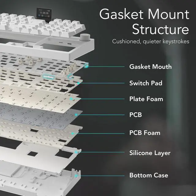 GASKET MOUNT AND CREAMY SOUND DAMPENING: Experience a smooth, quiet typing feel with TECWAREs gasket mount and multi-layer foam dampening system that reduces vibration and enhances sound absorption. This creamy sound keyboard offers stability and comfort for long typing sessions or gaming marathons, combining professional acoustics with a premium build for a satisfying and consistent typing experience.