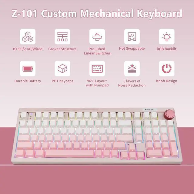Hot-swap Custom KeyboardThe hot swappable mechanical keyboard support 3-pin or 5-pin switches replacement. Even keyboard beginners can easily DIY there own keyboards without soldering issue. The mechanical gaming keyboard is equipped with pre-lubed clicky switches, bring tactile typing feeling and pleasant typing sound, provide fast response for exciting game.