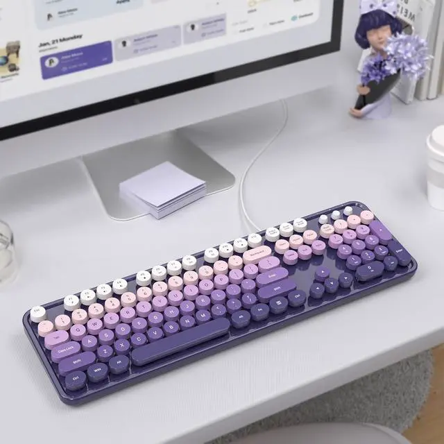 104-Key Full-Size Wired KeyboardThis typewriter style keyboard offers a complete 104-key layout for efficient typing with a charming retro design. The foldable stand and anti-slip design keep this wired keyboard steady, providing a comfortable and stable typing experience.