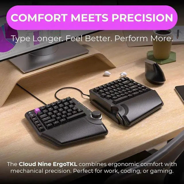For Work and Play Features programmable Hotkeys, a USB Pass-Through port, and extra " M" keycaps. Whether writing emails, coding, or gaming, the ErgoTKL helps you do it with more comfort & efficiency.