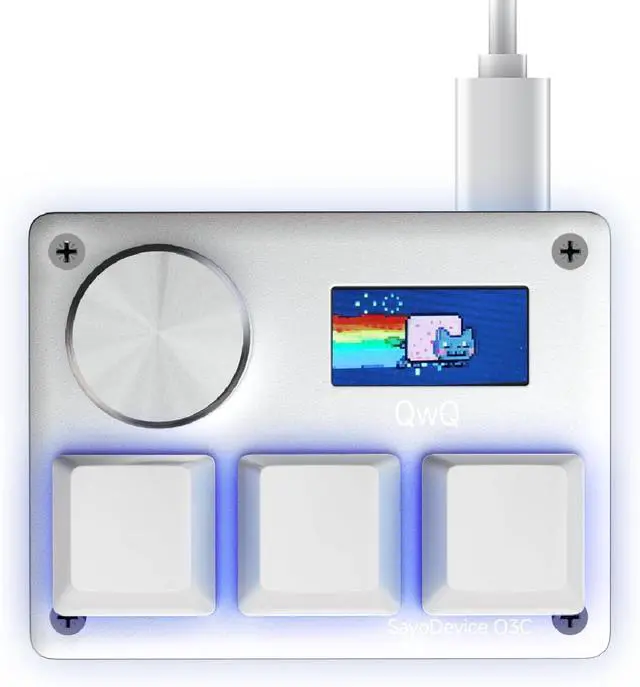 SayoDevice O3C KeyboardThis keyboard with 3 Hall magnetic linear switches, 1 knob, 1 screen! TYPE-C, USB 2.0 high-speed 8000HZ.