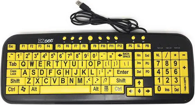 Easy Setup: The Datcal EZsee Yellow on Black Large Print Keyboard is plug-and-play, requiring no complicated installation. Simply connect it to your computer via USB, and you' re ready to start typing with improved visibility and ease.