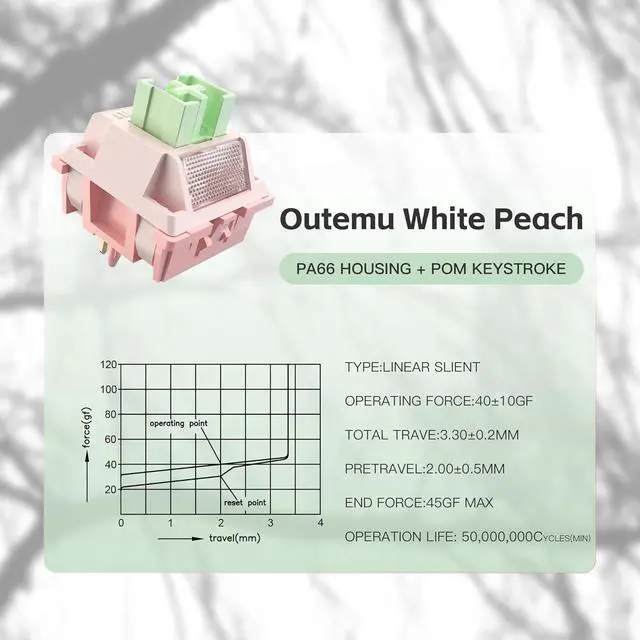 [Silent Switch] - OUTEMU White Peach V3 Pro Silent Keyboard Switch, factory-precision lubricated for fatigue-free, ultra-smooth operation even with prolonged use. Features dual-sided silicone strips around the switch stem and double-layer dampening, achieving a press noise level <35±1dB.Ideal for home typing,gaming,and office environments.