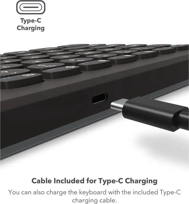 Long-lasting Battery & Sustainability: This keyboard boasts a Li-polymer battery offering up to three months of use before needing a recharge, and it' s eco-friendly too, containing 10% post-industrial recycled materials.
