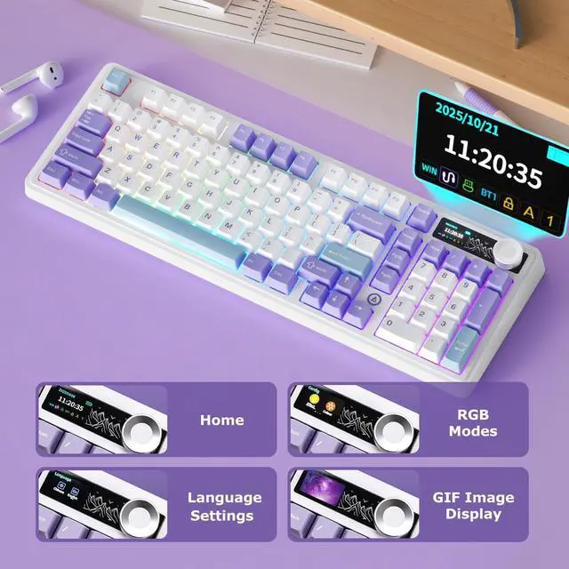 97% Space-Saving Layout & Smart 1.14 " TFT Display w/ Metal Knob Experience full functionality in a compact design. The vibrant color screen shows time, battery, connection mode & settings. Programmable metal knob instantly controls volume, scroll, lighting, or media your command center at a glance.
