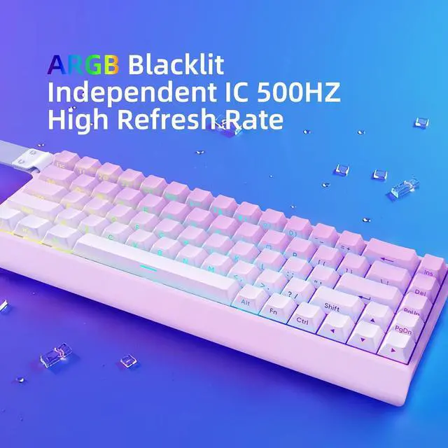 500HZ High Refresh Rate Customizable ARGBIROK Mer68 Magnetic keyboard Engaged with independent IC 500HZ High Refresh Rate ARGB lamp, presenting a rich colors for a personalized typing environment. provides better blacklit effects and enhanced eye protection.
