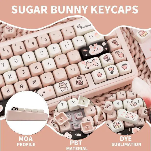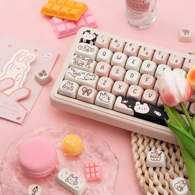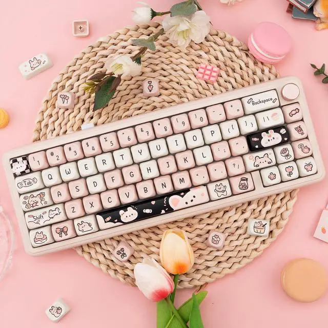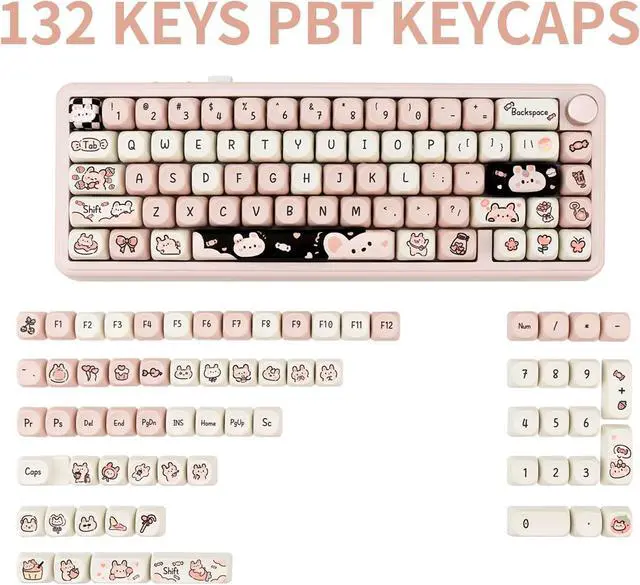 What you get1 x 132 Pink Bunny Keycap Set (with key puller, without keyboard).
