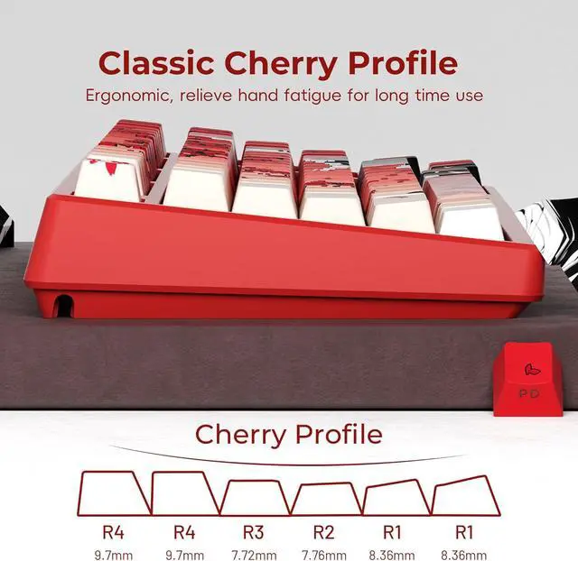 Classic Cherry Profile KeycapsThe key cap designed with the classic Cherry profile, engineered for the ultimate typing experience. You won' t get tired even if you use it for a long time at work or gaming.