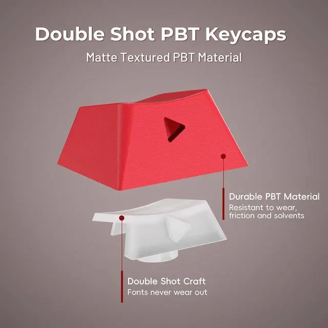 Double Shot KeycapsThese are doubleshot keyboard keycap set so the legends on the keycap will never wear out and the legends on the south of the keycaps can be illuminated due to the transparent PBT material used in its inner layer, give your backlit keyboard a better