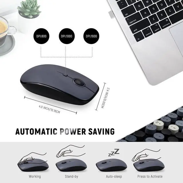 Smart Power Saving & Long-Lasting Battery LifeBoth the creamy keyboard and mouse feature an auto-sleep mode after 30 mins of inactivity to maximize battery life. Simply press any key or button to wake them up. Built with durable ABS material, this combo is designed for longevity and includes a low-battery indicator. (Requires 2 AAA and 1 AA batteries, not included).