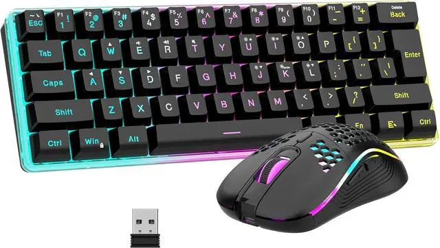 60% Compact Small Keyboard and Ultra-light Honeycomb Shell MouseThe most delicate and cute keyboard keeps your desktop neat, more space for mouse movement and other desktop devices. The well-designed perforated honeycomb shell mouse is ergonomically designed and weighs only 65 (+-5) grams, making it more flexible and comfortable without fatigue. The small keyboard and mouse combo will be the best choice for gamers.