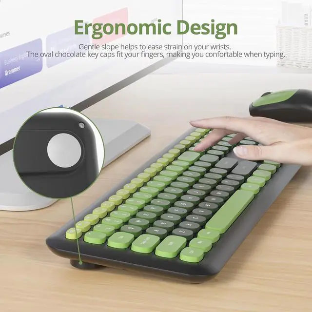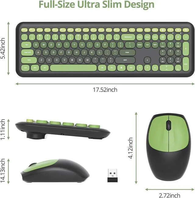 Quiet Typing Experience: Designed with low-noise keys, this cute dark green wireless keyboard and mouse ensures minimal disturbance in shared spaces. The soft keyboard feel and ergonomic layout provide a comfortable typing experience