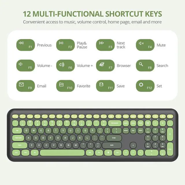 Multimedia Hotkeys: Equipped with 12 multimedia function keys, this cute colorful keyboard allows easy control over music, video playback, and web browsing, enhancing productivity and convenience