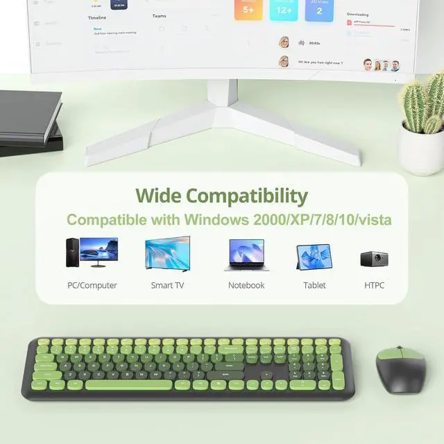 Universal Compatibility: This green keyboards and mouse set is compatible with Windows XP/Vista/7/8/10/11, ensuring reliable performance on compatible devices