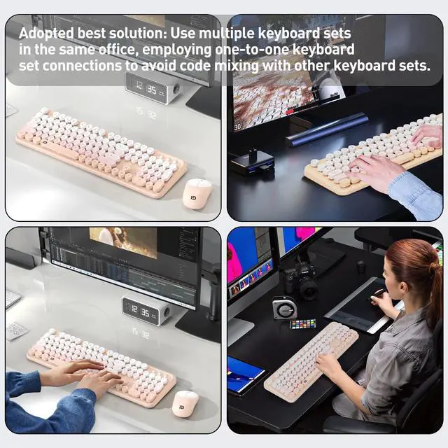 Comfortable Ergonomic DesignThe creamy keyboard and mouse features a folding stand and non-slip rubberized pads for ultimate comfort and convenience. The carefully designed angle provides optimal support so you won' t feel strain on your wrist muscles even when typing for long periods of time. The colorful keyboard and mouse wireless features specially designed keycaps so you can experience the ultimate typing pleasure. Every keystroke is a pleasurable journey! It is good office desk accessories and office supplies.