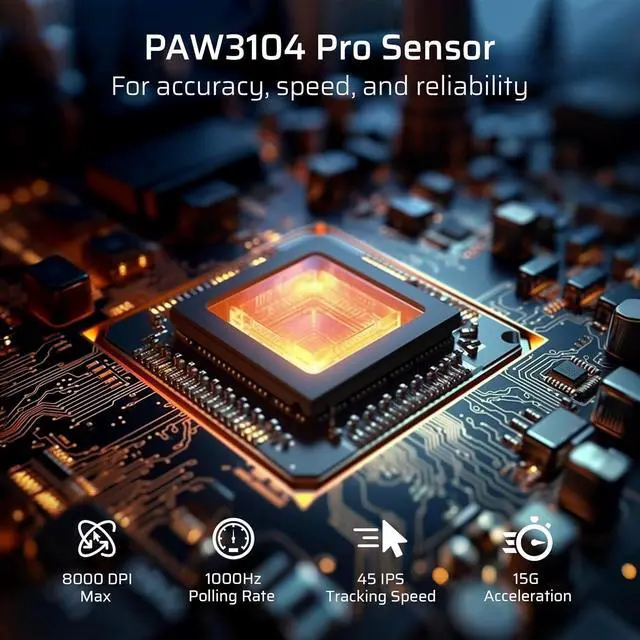 Reliable PAW3104 Sensor Equipped with a PAW3104 sensor, LTC GM023 mouse delivers precision with 1000Hz polling rate, 15G acceleration, and 45 IPS tracking speed. Choose from 6 DPI settings (up to 8000 DPI) for optimal control.