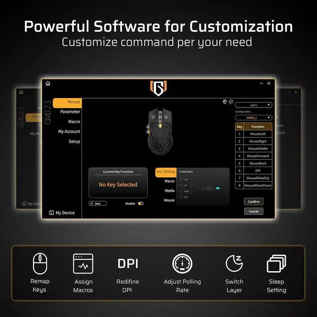 Pro Software Support Assign Macros, remap key functions, redefine 6-Step DPI, and fine-tune polling rate with the powerful LTC driver. Perfect for gamers and professionals seeking a tailored experience.