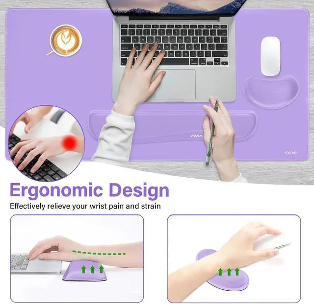 Ergonomically designed with breathable neoprene cloth and raised memory foam. Efficient for easy typing & pain relief. Offers soft support to relieve pressure and pain of your wrist, keep your wrist in a natural and comfortable state.