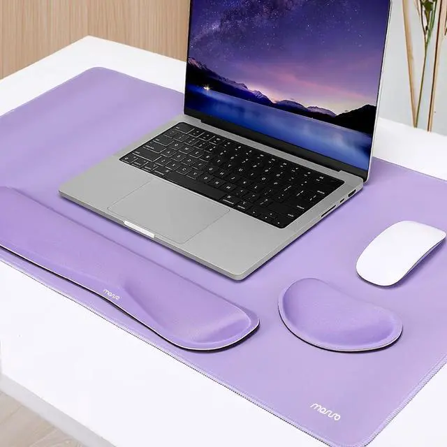 Dimension of large gaming mouse pad: 31.5 x 15.75 inch; dimension of keyboard wrist rest: 17.52 x 3.15 inch; dimension of mouse wrist rest support: 5.39 x 2.98 inch. Fits all mouse/keyboard. Compatible with MacBook / Notebook / Chromebook / Ultrabook / Desktop / PC, also compatible with iMac.