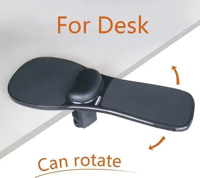Long black chair keyboard mouse pad tray, attachable couch gel elbow pads, rotating laptop table arm supporter mouse platform aneforall clamp accessories