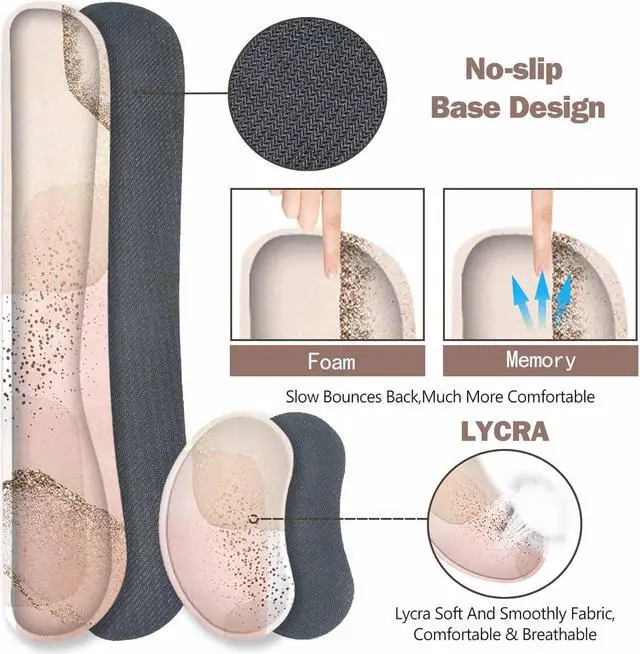 Ergonomic Design: Designed with memory foam and soft smooth material to the pads, lightweight comfortable and durable for your daily work life. This gaming mouse pad wrist support set is contoured ergonomically to keep arms, wrists, and hands from getting sore while working and gaming for long time, maximum reduce wrist stress and tiredness.