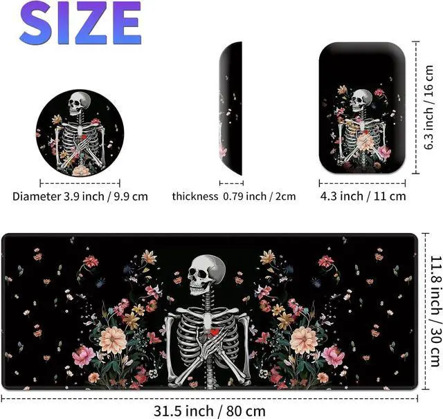 Desk: 6.3 " x 4.3 " x 0.79 ", Coaster: 3.9 ". The extended desk mat is large enough to accommodate a full-size keyboard and mouse, providing comfort and plenty of space for gaming or office work, and keeps your desk clean and tidy.