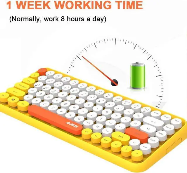 Compact & Fashion Bluetooth Keyboard: This Bluetooth keyboard has 84 round keys. It is compact and easy to carry. The fashion shape is inspired by the retro elegant typewriter shape, the unique round keycap. Just press FN + C keys to enter Bluetooth mode.