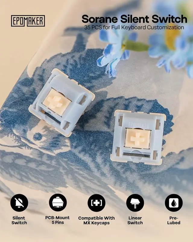 EPOMAKER Silent Mechanical Keyboard Switches Set - 35 Pieces Factory Pre-Lubed, 5-Pin Linear/Tactile Switches for Custom Mechanical Keyboards (Sorane(Linear Silent))
