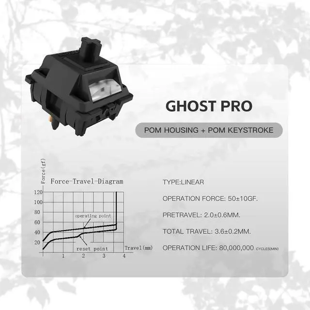 Quality Switches]: The Gateron Ghost Switch is an innovative mechanical keyboard switch made of all POM (Paraformaldehyde) material, 22mm Dual-Stage custom springs, Factory pre-lubricated - ready to use right out of the box, Allowing you to immerse yourself in the ultimate fusion of form and function!