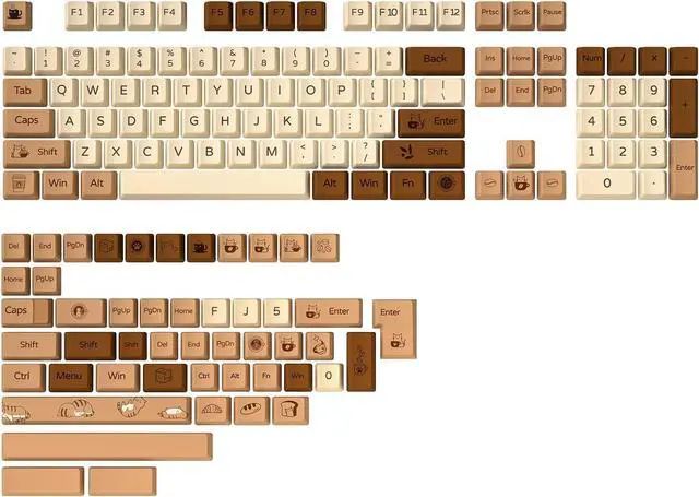Full Compatibility with Keyboard Layouts and MX switchesThis keycap set has more than 152 keycaps and will fit any size keyboard, like 61/87/104/108/84/64/98/96 and fullsize mechanical keyboards. A The coffee cat also add split spacebars 2.25 u and 2.75 u. And also a 7u spacevar. A set of novelty keycaps included in this keycap set. Get one set and make it all work. It is a good choice for you to custom keyboard