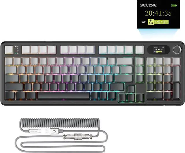 Make It YoursFully Customizable Smart Screen Break the limits of ordinary keyboards! The 1.14 -inch TFT screen lets you display custom GIFs, system status, battery life, time, connection mode, and more. Show off your creativity with personalized animations or keep track of essential data at a glance. Powered by an intuitive web-based driver, you can easily edit, upload, and switch your display content with just a few clicksno software installation needed!