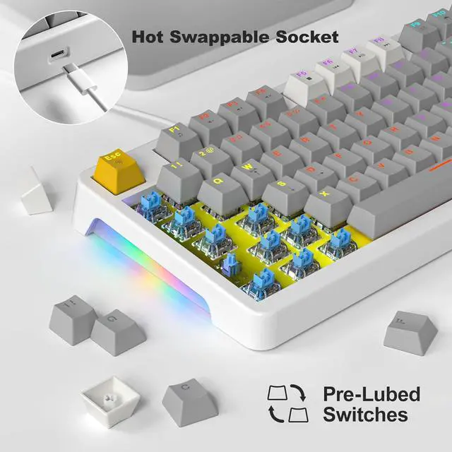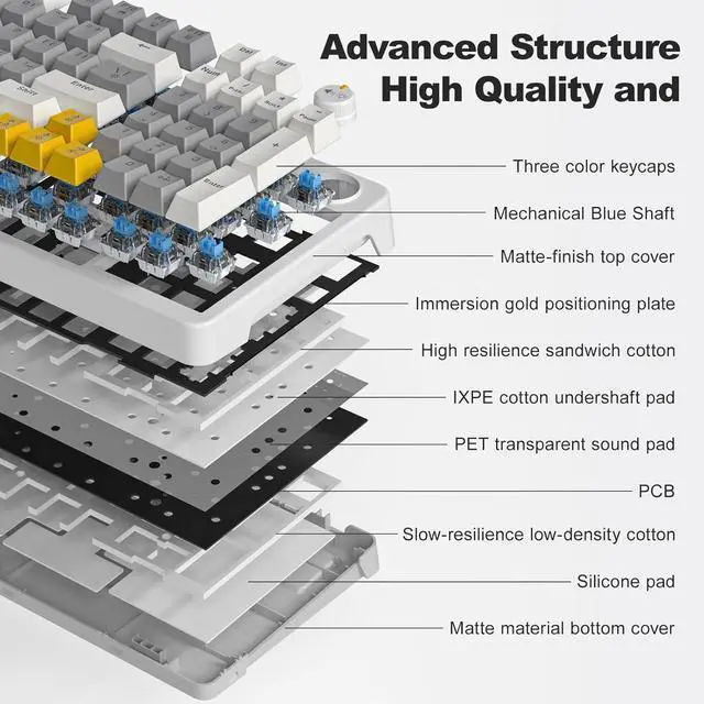 Layout AK96 Mechanical Keyboard: PBT keycaps resist fading, retain arrow keys & numpad for work/gaming versatility.