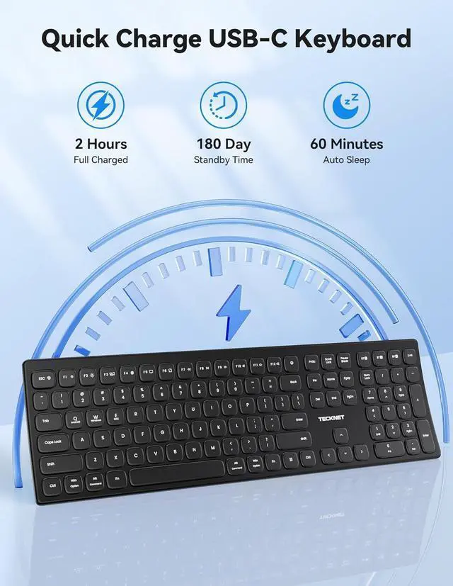 Silent Precision TECKNET silent keyboard features a professional scissor-switch key design with a 2mm key travel, slashing noise by 90% for a quiet typing experience. This computer keyboards into your go-to for distraction-free focus in any setting. UV keycaps provide tactile accuracy while resisting shine for 10 million keystrokes.