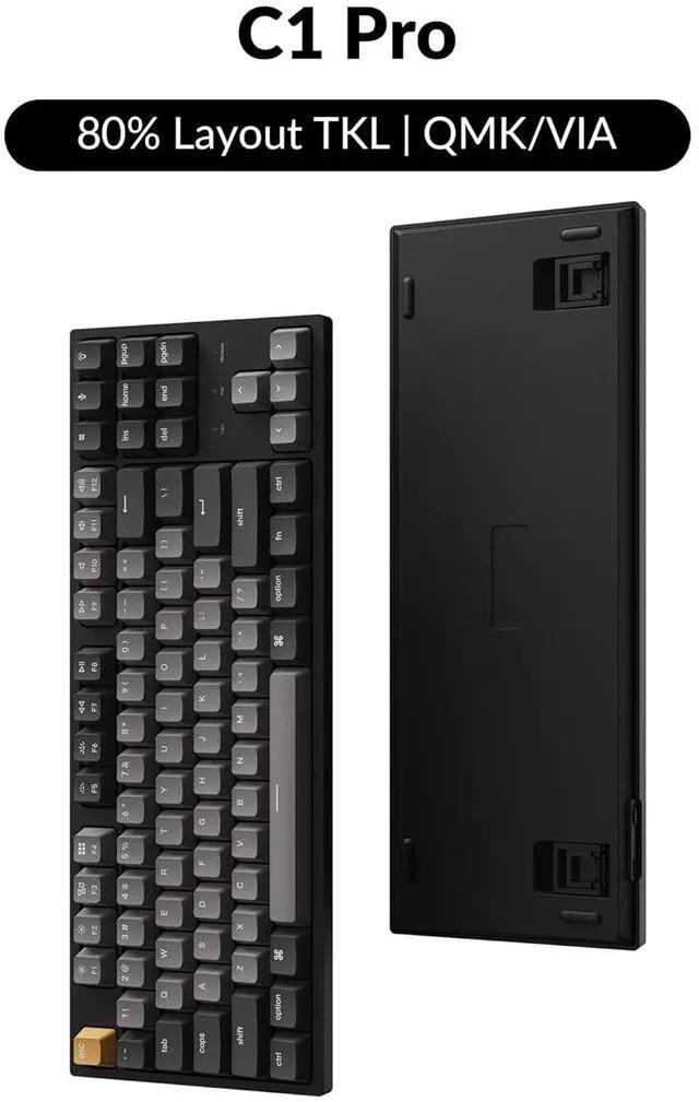 TKL Layout Wired Mechanical Keyboard: The C1 Pro is a wired mechanical keyboard with a classic TKL (80%) layout and many premium features like QMK/VIA support, PBT keycaps, a 1000 Hz polling rate, included keycaps for both Windows and macOS, etc., which provides endless possibilities and a comfortable typing experience.