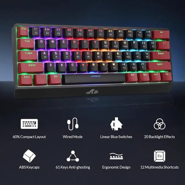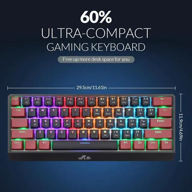 60% compact layout: The 61-key mechanical keyboard features a compact 60% layout, freeing up more desk space. Its portable design makes it easy to take on trips