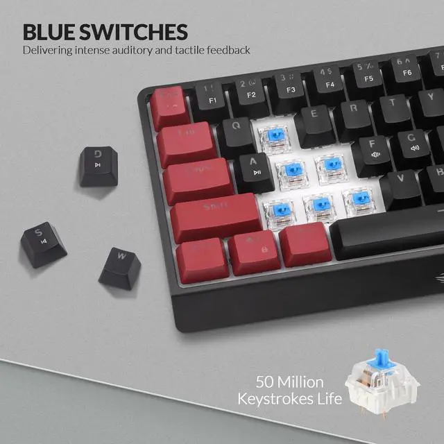 Mechanical Blue Switch: The blue switches provide distinct tactile feedback and a satisfying click when pressed. The key force and audible click offer excellent typing feedback, delivering a unique user experience that enhances typing efficiency and comfort